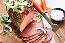 Skär steken i tunna skivor.
