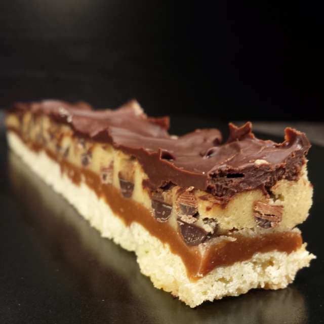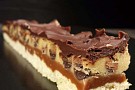 Bred ett jämnt lager med kaksmeten på caramel lagret.