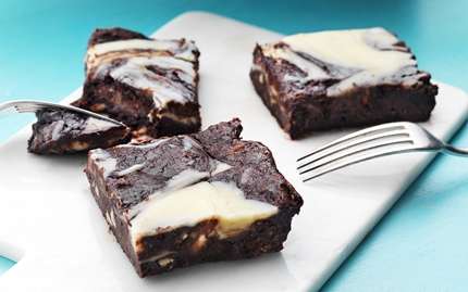 Bred ut smeten i formen och klicka på chokladsmeten och dra runt så att det bildas mönster i kakan.