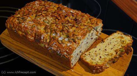 Häll smeten i en bakplåtsklädd brödform och strö gärna över pumpakärnor och flingsalt.