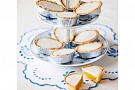6. Fördela mandelfyllningen i mazarinformarna. Grädda dem mitt i ugnen i 15–20 min. Låt dem kallna helt i formarna.