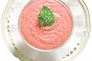 3. Vispa äggvitan så hårt att det går att vända upp och ner på bunken utan att smeten rinner ut. Vänd försiktigt ner äggvitan i hallonblandningen. Lägg upp smeten i en stor skål eller i portionsskålar.