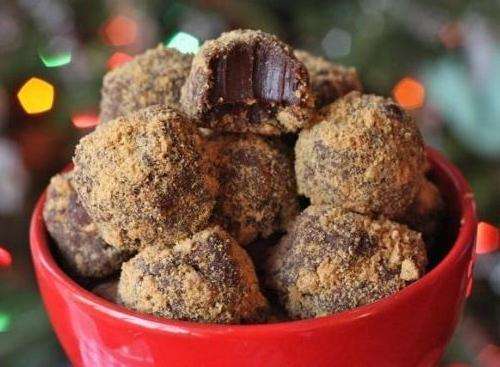Låt stelna i kylskåp någon timma och rulla slutligen dina tryfflar i pepparkakssmulor eller kako innan servering