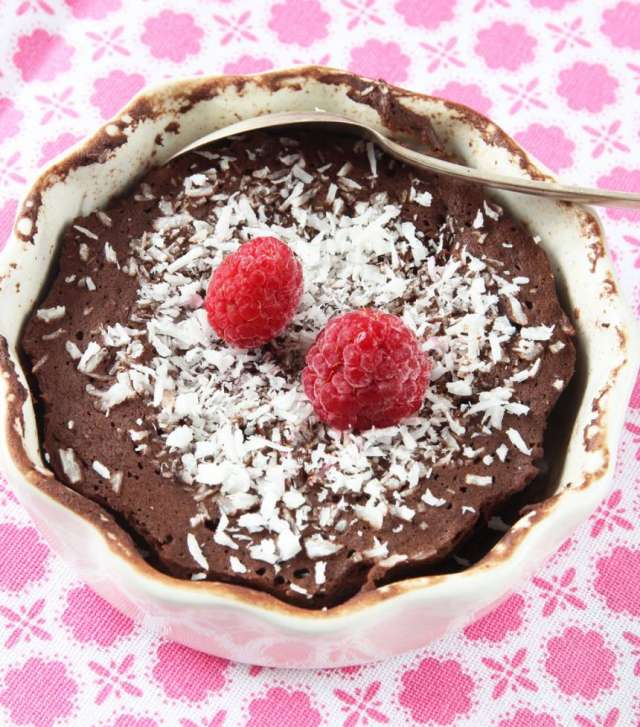 Häll smeten i två mindre skålar, ca 12 cm i diameter (eller i en större). Strö över kokos.