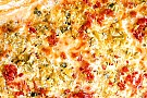 8. Strö purjolök och bacon över, slå i fyllningen och pudra paprika över.
