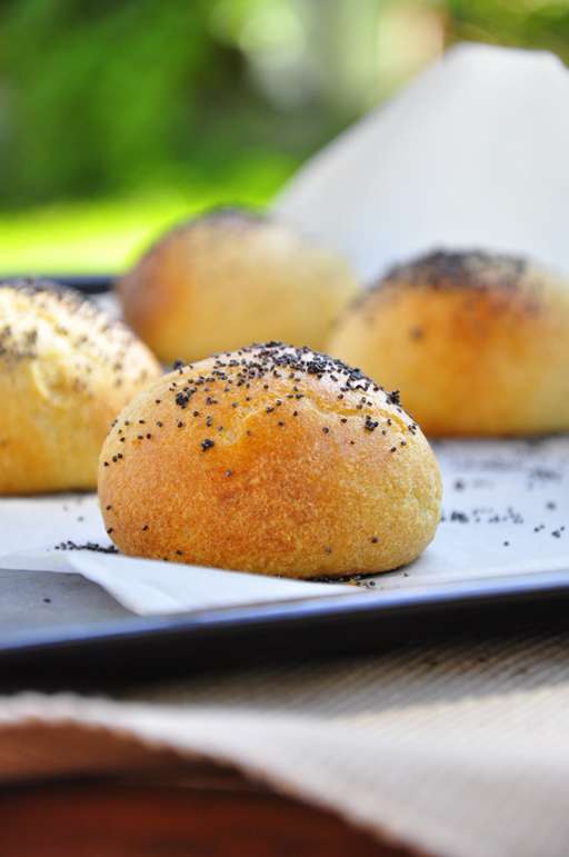 Lägg dem på ugnsplåten, strössla över vallmofrön.