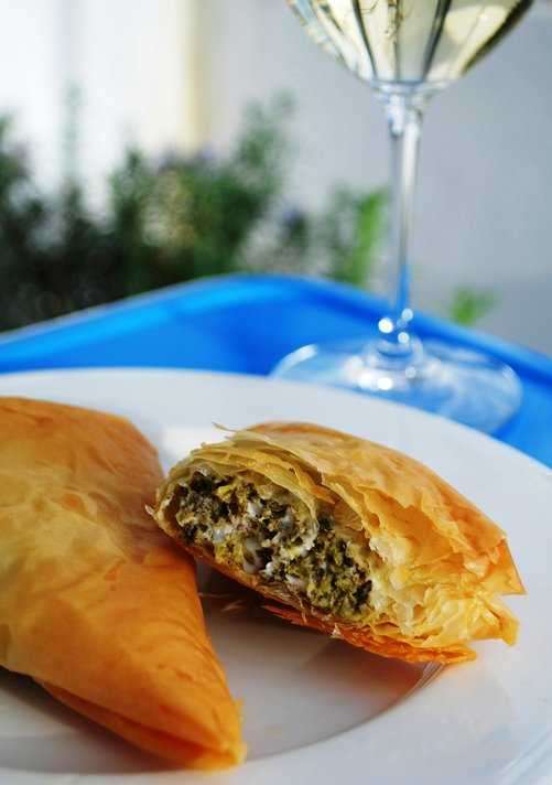 Frasiga piroger med nässlor, ramslök, feta & kanel