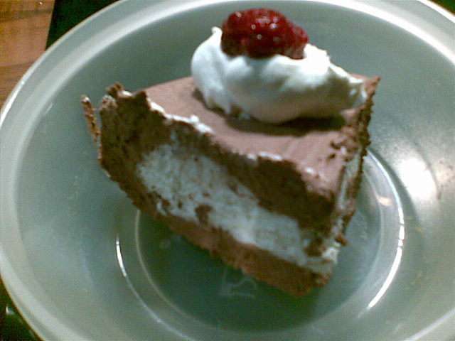 Bred ut den vita moussen ovanpå och avsluta med 1/3 brun mousse.