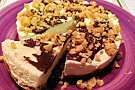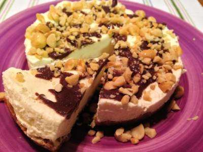 Dekorera cheesecaken med chokladen och toppa med hackade jordnötter. Ställ in cheesecaken i frysen i minst 4 timmar.