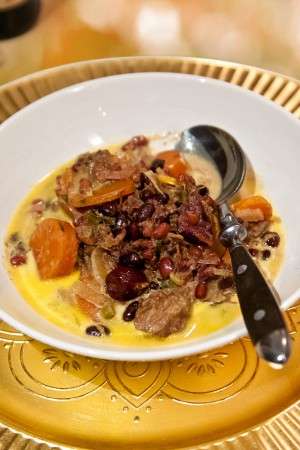 2Skiva upp fänkål och morötter. Ha ner det i slökokaren tillsammans bönor och hackad bladpersilja.