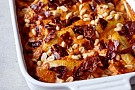 7. Strö bacon och jordnötter över den färdiggratinerade kycklingen. Servera med grönsallad och kokt ris.