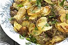 5. Varva potatis, lök och kött i en djup ugnsfast gryta. Börja och avsluta med potatisen. Salta potatisen i varje lager.