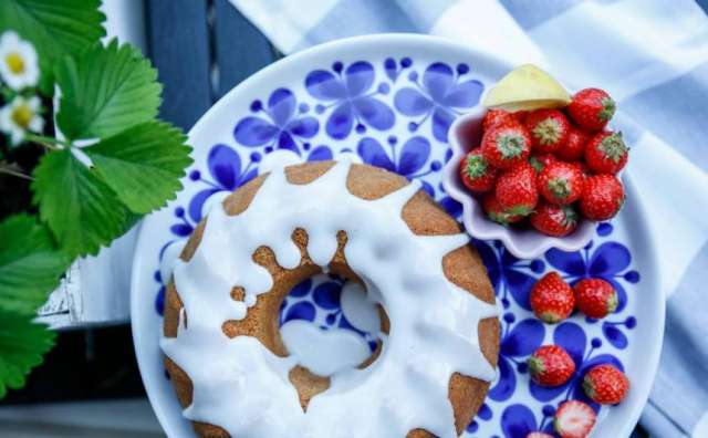 När kakan svalnat, vispa ihop florsocker och citronsaft och fördela glasyren över kakan.