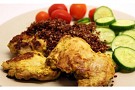 3. Stek eller grilla kycklingbitarna. Stek/grilla i upphettad stekpanna/grill några minuter på varje sida tills köttet är genomstekt. Serveringstips: