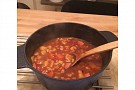8. Låt koka ett tag och krydda av med svartpeppar, paprika pulver, chillikrydda, soya, tabasco, salt, timjan och hot chilli sås.