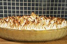 9. Montering: Ta fram pajen och spritsa fina toppar av marängen ovanpå citronkrämen. Bränn av med en gasolbrännare och dekorera med färska bär.