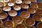 5. Fördela chokladsmeten i formarna. Ställ kallt att stelna.