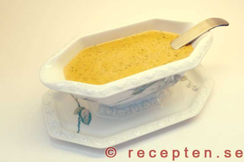 Späd med grädden lite i taget och vispa till en jämn sås.