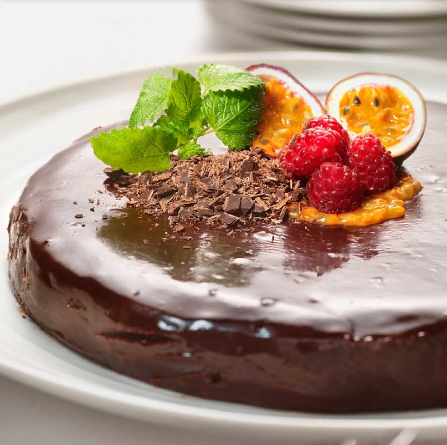 Lägg tårtan på ett fat. Bre över kolakrämen i ett tjockt lager och låt stelna.