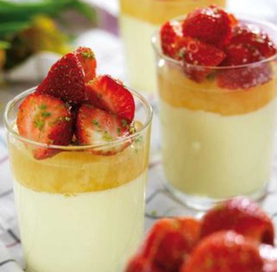 Fördela ananasgelén över pannacottan och jämna till ytan lite. Ställ det kallt att stelna.