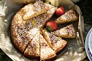 5. Häll smeten i formen och strö över pärlsockret. Baka i mitten av ugnen i 25–30 minuter.