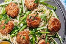 1. Kycklingfärsbiffar: Skala och finhacka lök och vitlök. Blanda med färsen i en bunke och tillsätt chiliflakes, finhackad koriander, skal- och limesaft från en 1/2 lime, soja, peppar och salt. Blanda om ordentligt och forma 8 biffar.