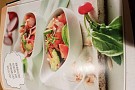 Lägg tomater, lök och rädisor ihop med avokadorna och blanda med dressingen. Låt det gärna dra i 20 minuter. Skölj och torka basilikan och skär i tunna strimlor. Servera avokado- och tomatsalladen med rostade pinjenötter och basilika.