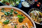 Sist en näve färsk spenat och babytomaterna. Dela dem på mitten.