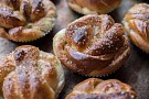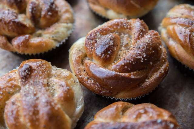 8. Lägg bullarna på plåtar med bakplåtspapper eller i en bullform. Täck med bakduk och låt jästa ytterligare 30 minuter. Sätt ugnen på 225 grader.