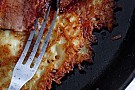 stekningen av raggmunkarna.4. Riv potatisen grovt direkt ner i äggsmeten.5. Fräs lite smör i stekpannan med fläskflottet och klicka i lite smet. Beräkna cirka 1/2 dl smet per raggmunk.6. Bred ut varje raggmunk med en stekspade och stek dem på medelvärme någon minut på varje sida så att de blir gyllenbruna.7. Servera raggmunkarna med fläsket och rårörda lingon.8. Rårörda lingon: Lägg lingon och strösocker i en skål och rör tills bären är mosiga och sockret lösts.