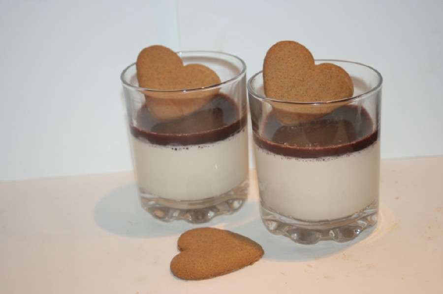 Börja med pannacottan. Lägg gelatinbladen i blöt i kallt vatten. Blanda socker och vaniljsocker i en kastrull. Häll på grädden och rör om. Låt blandningen koka upp under omrörning och koka 1-2 minuter, rör om då och då så att inget bränns. Dra av kastrullen från plattan, pannacottan får inte koka när du lägger i gelatinbladen. Smaka gärna av. Krama ur allt vatten ur gelatinbladen och lägg den i den varma pannacottan. Rör om ordentligt och fördela gräddblandningen i 4 st skålar. Ställ i kylen i minst 4 timmar eller till serveringstillfället.