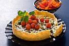 1. Blanda  snabbt ihop smör, mjöl och vatten till en pajdeg i en matberedare. Tryck ut degen i en form med löstagbar kant ca 24 cm i diameter. Ställ formen kallt ca 30 min. Sätt ugnen på 175°.2.  Grovhacka basilikan. Vispa ihop ägg, gräddfil, salt och basilika. Skiva mozzarellan. 3. Blanda tomaterna med olja och salt i en liten ugnssäker form.4. Förgrädda pajskalet och baka tomaterna mitt i ugnen ca 15 min. Ställ tomaterna åt sidan och låt pajskalet svalna något.5. Lägg ostskivorna i bottnen av pajskalet. Häll fyllningen över. Grädda mitt i ugnen ca 30 min, tills fyllningen stannat.6. Låt pajen svalna något. Lägg tomaterna på pajen och garnera med lite extra basilika. Servera strimlad paprika till.