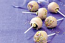 hål i bollarna med klubbpinnarna. 3. Smält 50 g vit choklad och doppa pinnarna i chokladen. Tryck in dem i bollarna. Ställ i frysen 30 min så att pinnarna fastnar och bollarna blir riktigt kalla. 4. Smält 250 g vit choklad i vattenbad eller i mikro. Rör i karamellfärgen. Låt chokladen svalna en aning så att den ”tjockar till sig”. 5. Doppa klubborna i chokladen. Ta hjälp av en sked för att täcka bollarna helt. 6. Stick ner klubborna i oasis eller frigolit. Garnera med strösslet. Låt stelna. Förvara ”bollarna” kallt till servering.