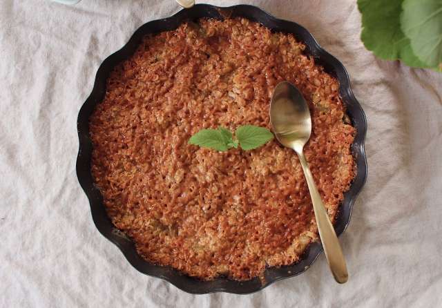 Låt svalna något innan servering så blir kolatäcket mer knaprigt. Glöm inte att göra knäcketestet! (Knacka med en sked på pajen för att höra hur knaprig den är).