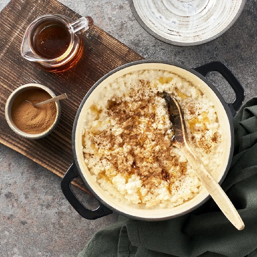 Ta ut kastrullen och rör runt i gröten. Låt gröten stå och vila ca 10 minuter före servering.