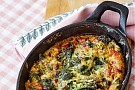 *Häll äggstanningen i formen och tillaga i ugnen i cirka 20 minuter eller tills rätten fått fin färg.