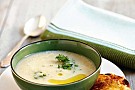 5. Gratinera mitt i ugnen 7-10 min. Droppa 1 msk olja på soppan och servera med bröden. Garnera eventuellt med smörgåskrasse.