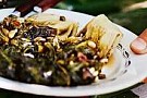 5. Bryn salladsknytena runt om i solrosolja i en stekpanna. Stek dem under lock på låg värme i ca 30 minuter eller tills de känns mjuka. Späd eventuellt med lite vatten under stektiden.