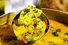 Vispa ner mjölken så att den blandar sig väl med buljongen. Smaka av med salt och cayennepeppar.