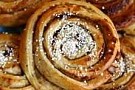 40 - 50 bullar1. Ljumma mjölken till ca 37 grader. Smula ner jästen i en degbunke. Häll på mjölken och rör om tills det mesta av jästen har lösts upp.2. Tillsätt socker, salt, kardemumma och det mesta av vetemjölet men spara lite mjöl till utbakningen. Klicka i smöret. Arbeta kraftigt till en smidig deg. Täck med bakduk och låt degen jäsa till dubbel storlek, ca 30 minuter.3. Rör samman fyllningen.4. Ta upp degen på mjölat bakbord och arbeta samman den. Dela den i två delar.5. Kavla ut varje del till en platta, ca 25x50 cm. Bred på fyllningen och rulla ihop längs långsidan. Skär rullen i ca 2 cm breda bitar och lägg dem i bullformar. Eller kavla ut degen till en platta som är ca 35x40 cm. Bred fyllning på halva plattan och vik över den obredda delen. Dela plattan i 20–25 remsor, vrid varje remsa till en snodd och vik ihop den till en knut. Lägg i bullformar.6. Låt bullarna jäsa övertäckta i 20–30 minuter. Värm under tiden ugnen till 250 grader.7. Pensla bullarna med uppvispat ägg och strö över pärlsocker.8. Grädda i mitten av ugnen i 8–10 minuter. Låt bullarna svalna övertäckta med bakduk.Recept: Ingrid Eriksson