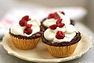 8. Sänk ugnstemperaturen till 175 grader och grädda i mitten av ugnen i 15–20 minuter. Servera med lättvispad grädde och färska hallon.
