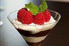4. Tag fram cocktailglas och fyll först med mörk chokladmoussen, sen vit chokladmousse, varva och avsluta med den vita moussen.