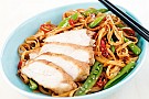 6. Skiva kycklingen och servera med nudlarna.
