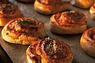 5. Pensla med ägg och strö över oregano. Grädda 12-15 min, de ska ha fin färg när de är klara. Servera dem gärna ljumma.Förvara i frys eller kyl om de inte ska ätas direkt.