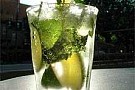 1. Man börjar med att krossa myntablad och lime (i klyftor) tillsammans med sockerlagen. Ta en knapp handfull mynta och smaka av, målet är att mynta och lime ska smaka ungefär lika mycket.