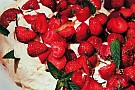 4. Fördela hela eller skivade jordgubbar ovanpå tårtan.