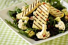 Grillad halloumi med rucolasallad, svarta bönor och avokado